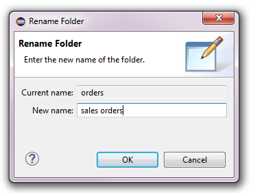 A resource node can be renamed at any time by selecting the resource node and pressing the F2 key or opening the context menu and selecting the Rename action. The following dialog will pop up: